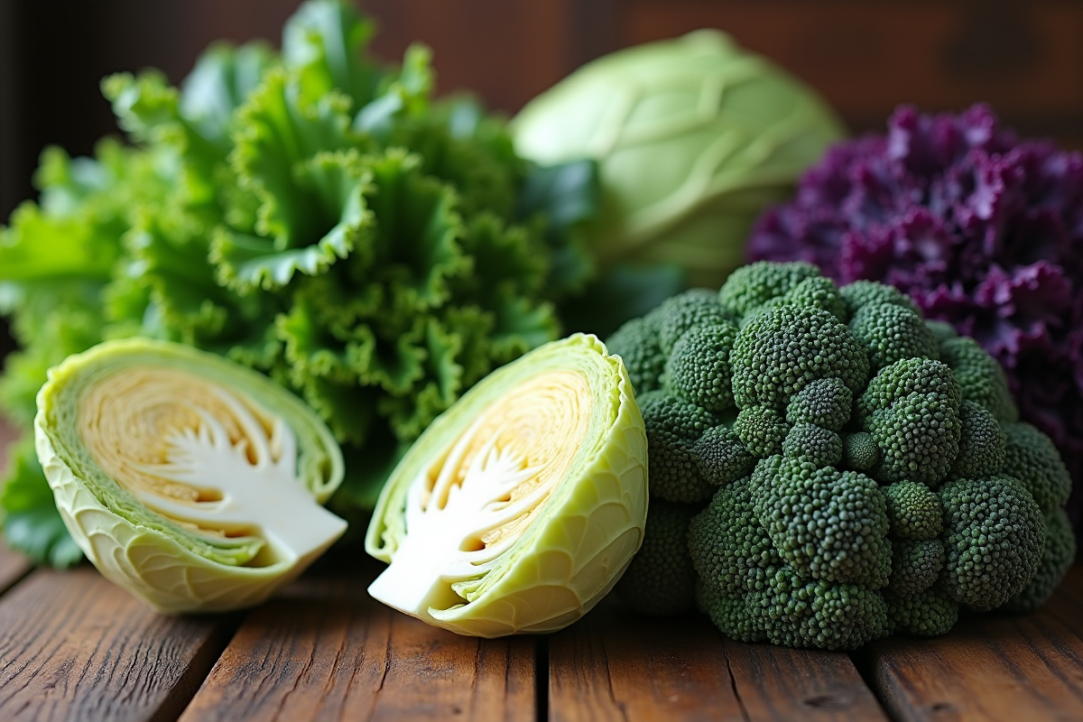 - Chou vert : riche en glucosinolates et en vitamine C, bénéfique pour la santé digestive.